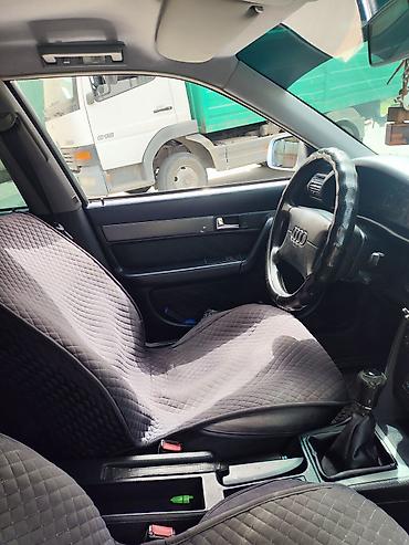 Audi A6 C4 седан, темно-синий цвет. Основные характеристики по фото: - Кузов: 4-дверный седан, темно-синий, тонированные стекла. - Оптика: прямоугольные фары, передняя решетка с эмблемой Audi. - К...