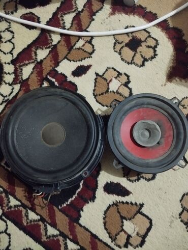 - Круглые широкополосные динамики разного диаметра: один крупный (примерно 16–17 см), второй меньший (примерно 13 см).