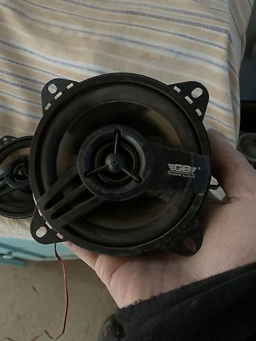 2) Пара коаксиальных динамиков GBT (круглые, приблизительно 10 см/4"). Трёхточечное крепление, выведены провода подключения.