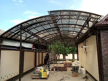 Кованые уличные конструкции: беседки и козырьки/навесы для крыльца. Описание: - Металлический каркас из профильной трубы с декоративной художественной ковкой. - Крыша: дугообразные и двускатные ва...