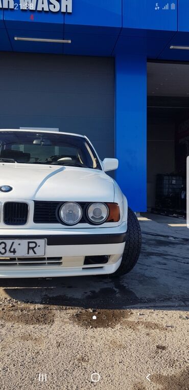 Классический дизайн с фирменными круглыми фарами и «почками». Кузов седан, 4 двери. Белый цвет, черные декоративные молдинги по периметру, передний нижний спойлер. Литые 5‑спицевые диски, зимняя шина на передней оси на фото. Задние фонари стандартные, крышка бензобака круглая (на одном фото без лючка). Черные бамперы с защитными накладками.