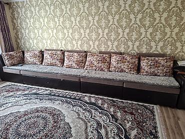 Угловой модульный диван большой вместимости. Б/у - Форма: Г‑образный, длинная сторона — примерно на 6–7 посадочных мест, укороченная — на 3–4. - Комплектация: набор из отдельных модулей с прямыми...