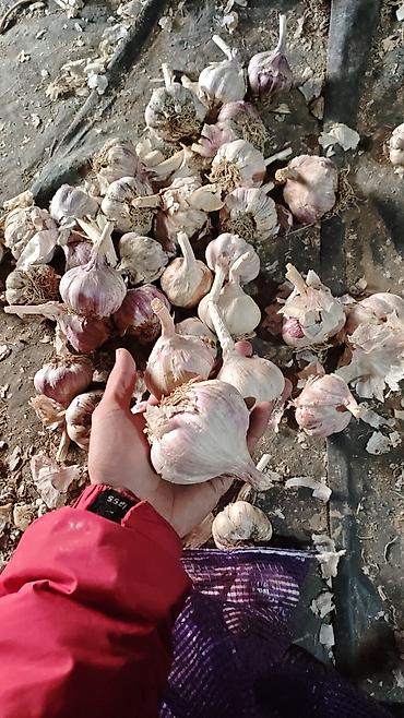 Продаю чеснок,Исыкульский со своего поля оптом ив розницу цена от 100сом зависит от размера В Бишкеке дома вчера поивёз за