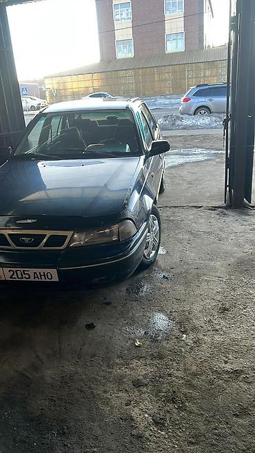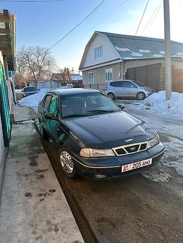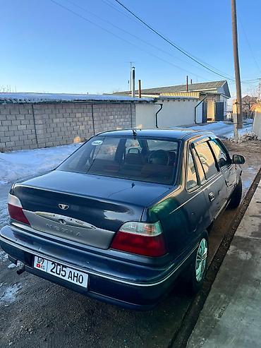 Daewoo Nexia, седан, тёмно‑синий цвет. Кыргызские номера (KG), надпись Nexia на крышке багажника.