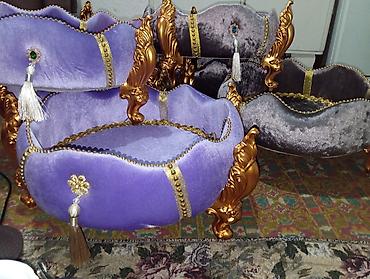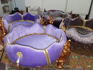 - Материал: мягкий бархат (фиолетовый и графитовый), декор золотым кантом, тесьмой и бусинами.