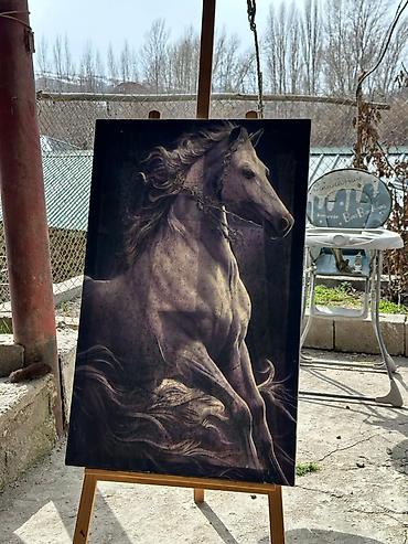 - Рекомендуемая высота холста — от небольших до крупных форматов (на фото — пример установки большой картины).
