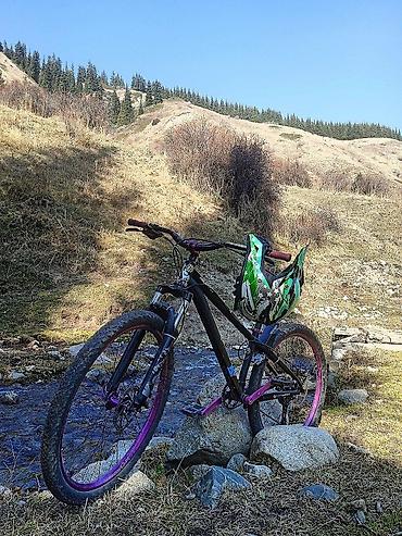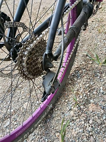 - Цветовые акценты: фиолетовые обода, шатуны, вынос и мелкие детали; рама чёрная матовая.