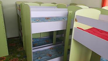 - Комплектация на фото: матрасы детского размера с мультяшным принтом, некоторые кровати с тонкими стёгаными покрывалами.