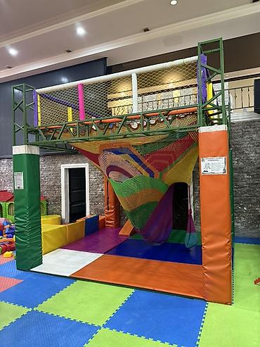 - Игровые зоны: сухой бассейн с шарами, горки разных уровней, сеточные переходы и тоннели, мягкие препятствия, верёвочные и каркасные конструкции