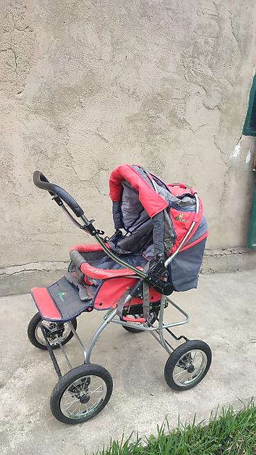 - Рама: металлическая, прочная, с механизмом перекидной ручки