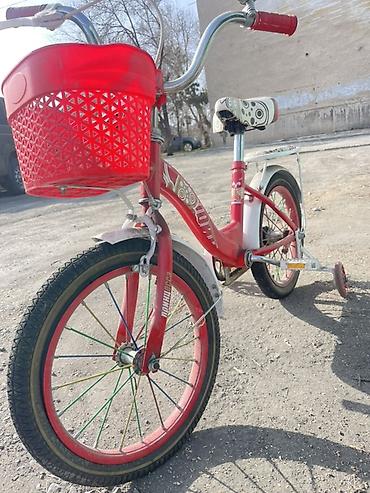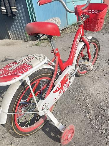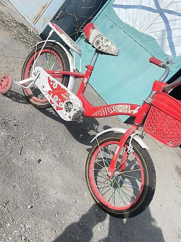 Детский велосипед с дополнительными боковыми колесами. Характеристики и комплектация: - Колеса примерно 14" (низкая рама, подходит для первых поездок). - Съемные страхующие колесики для обучения р...