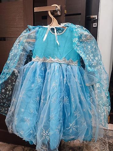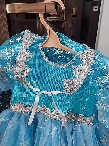 Праздничное детское платье в стиле ледяной принцессы. Одевали 1 раз. На 5-6лет - Цвет: насыщенный голубой. - Верх: гладкая ткань с ярким принтом героини анимационного фильма; круглый вырез. - Рука...