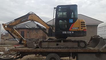 - Колёсный/гусеничный экскаватор компактного класса (на фото SANY SY60C), маневренный, подходит для работ на частных участках и стройплощадках.