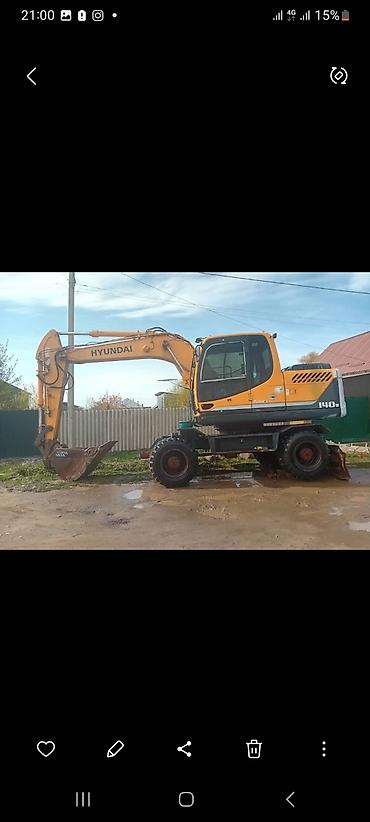 Услуги экскаватора Hyundai (колёсный) - Модель: Hyundai Robex 140W-9S (колёсный экскаватор) - Тип работ: рытьё котлованов и траншей, планировка, погрузка/перегрузка сыпучих материалов, очистка площ...