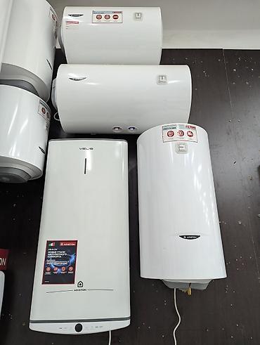 Водонагреватели накопительные и компактные - Тип: электрические накопительные бойлеры - Бренды на фото: BLESK, Ariston (серии Blu R/ABS, Velis и др.) - Исполнение: вертикальное и горизонтальное; ц...