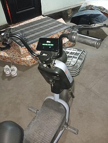 Электровелосипед/электроскутер городского типа - Полноразмерные 20–22" колёса с дорожным протектором, передний дисковый тормоз. - Массивная передняя вилка, двойные амортизаторы спереди для комфорт...