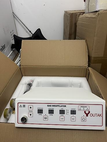- Перистальтический насос-ирригатор (блок в коробке): передняя панель с экраном и прижимным узлом для трубки, комплект кабелей и стерильных магистралей в упаковке.