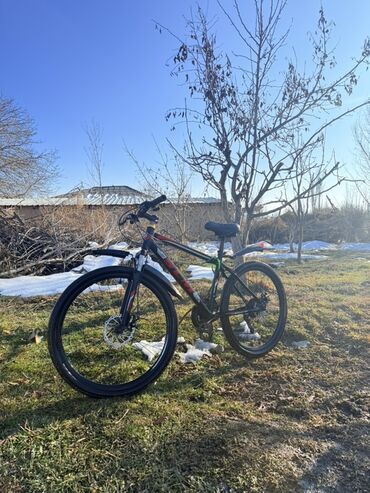 - Классическая хардтейл-рама из алюминия/стали (черная с красными акцентами).