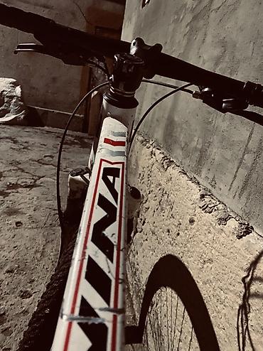 Горный велосипед GININI/GININA (бренд по надписи на раме), белый с черными и красными акцентами.