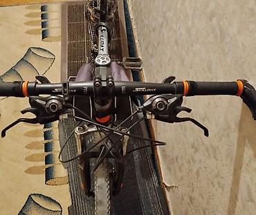 - Руль: прямой, с расширителями/рогами и грипсами с оранжевыми вставками