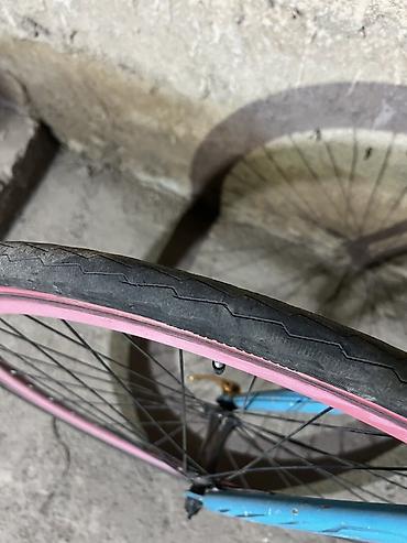 - Колеса: 28 дюймов, обода глубокого профиля розового цвета, покрышки дорожного типа (с гладким протектором для асфальта)