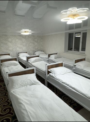 - Просторная общая спальня на 9 отдельных односпальных кроватей. Каждая кровать с матрасом, подушкой и комплектом белого постельного белья.