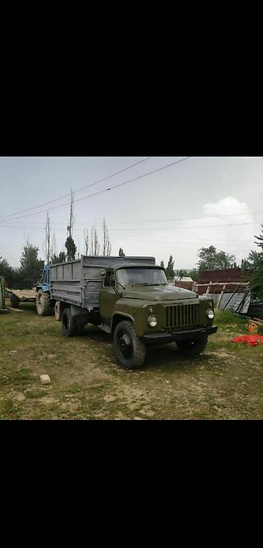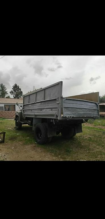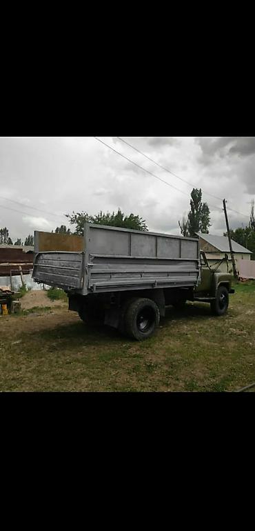 Грузовой автомобиль Газ53 (самосвал) Описание: - Тип: заднеприводный/двухскатная задняя ось, механическая коробка передач. - Кузов: металлический самосвальный, высокие борта, усиленные петли и зам...