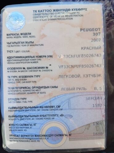 Peugeot 307, пятидверный хэтчбек, красный металлик.