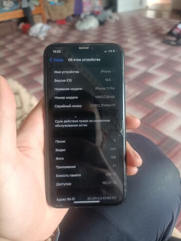 IPhone 11 Pro, 64 ГБ Характеристики и детали по фото: - Цвет: Space Gray (тёмно‑серый). - Память: 64 ГБ (доступно около 47 ГБ). - Модель: iPhone 11 Pro (номер модели MWC32LL/A). - iOS: 26.1 (отобр...