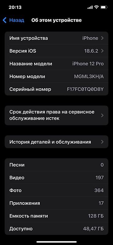 - В разделе «Об этом устройстве» отображается серийный номер F17FC0TQ0D8Y (на скриншоте)