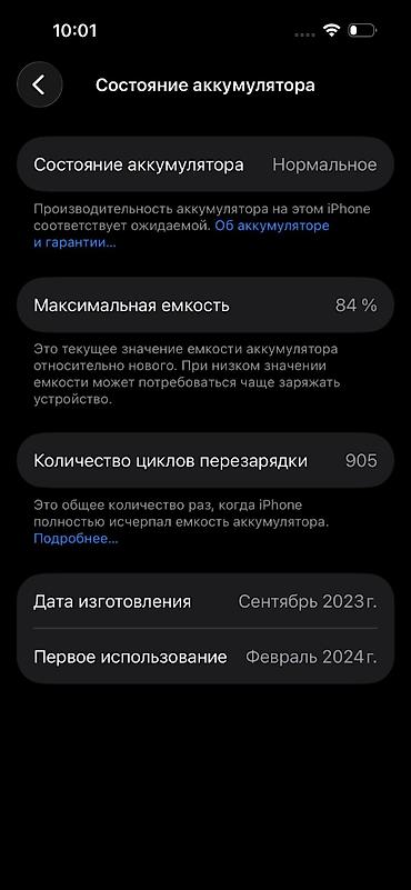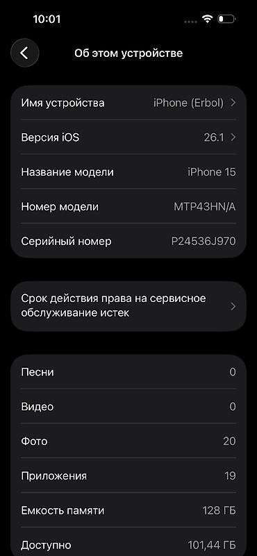 IPhone 15, Б/у, 128 ГБ, Белый, Кабель, 84 %