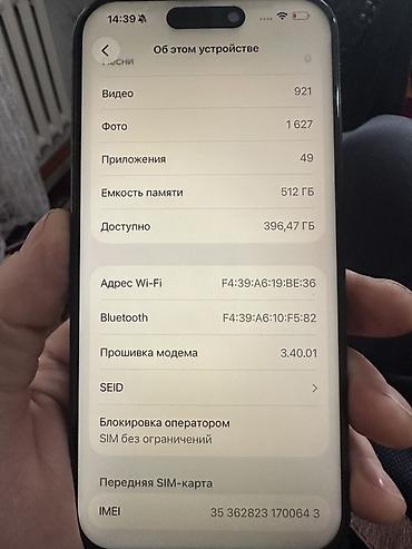IPhone 15 Pro, Б/у, 512 ГБ, Black Titanium, Кабель, 100 %