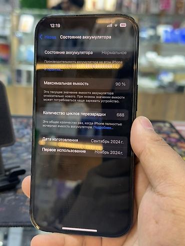 - Аккумулятор: максимальная ёмкость 90%, 688 циклов; состояние аккумулятора — «Нормальное»