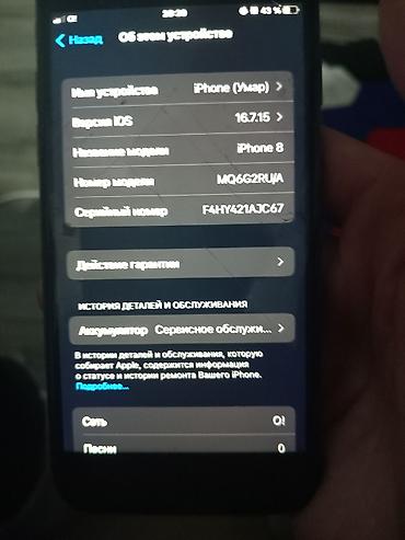 Модель Айфон 8 Зарегистрирован Состояние 10/10 Память 64Гб. Акб 68% Три Тон ✅ Отпечаток ✅ Цена 6000с Без торга и обмена Есть доставка по городу 200.300.400сом