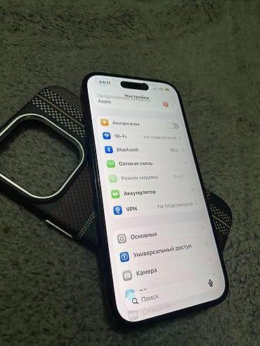 - Экран: OLED Super Retina XDR ~, вырез Dynamic Island, высокая яркость, плавная прокрутка, отличная цветопередача.