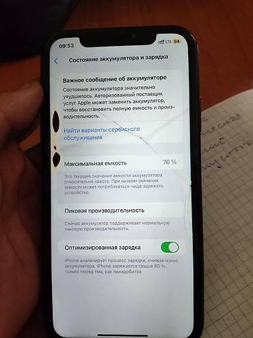 - Состояние аккумулятора в настройках показывает 76% и уведомление о необходимости обслуживания