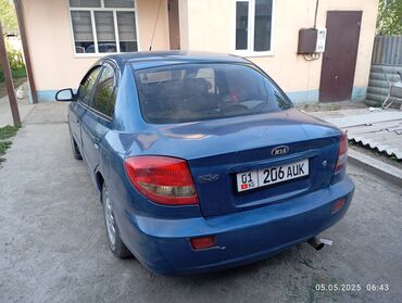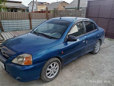 Kia Rio седан, белый цвет, на кыргызских номерах (KG 08). Кузов 4‑дверный, тонировка задних стекол. Легкосплавные диски Kia, штатные колпаки, боковые повторители поворота на крыльях. Передняя оптик...