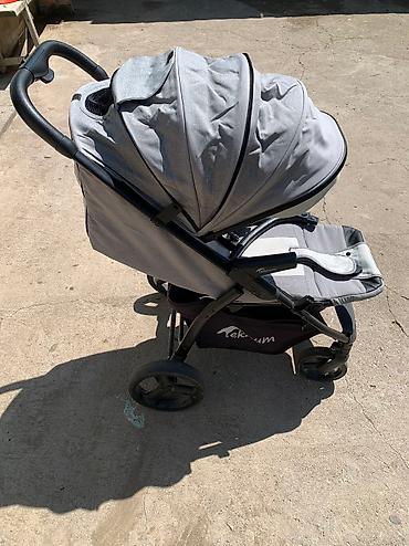 Детская коляска Teknum. почти не пользовались. Находимся в Канте. Особенности: - Цвет: серый с элементами под кожу - Шасси с амортизацией, поворотные передние колеса, задние — увеличенного диаметр...