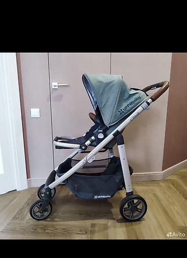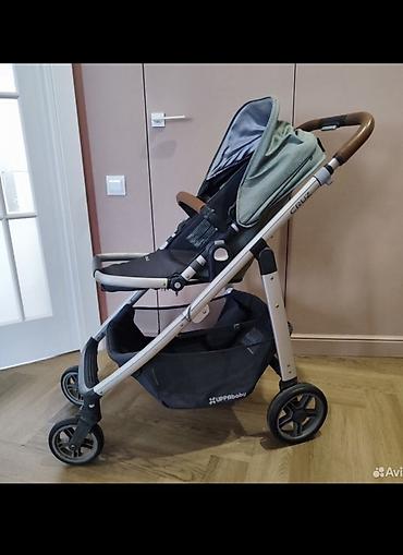 Цвет обивки: серо-зелёный (капюшон/люлька), сиденье тёмно-серое. Брендинг UPPAbaby и CRUZ на раме и корзине.