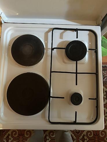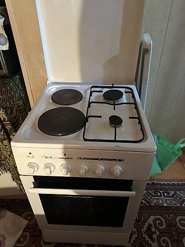 Кухонная плита комбинированного типа с духовкой. - Варочная поверхность: 4 конфорки — 2 газовые и 2 электрические (чугунные «блины»). Установлены решётки над газовыми конфорками, есть стеклянная к...