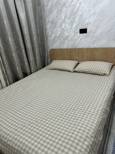 - Текстиль в нейтральных тонах: покрывало и наволочки в клетку, светлые шторы блэкаут.