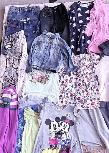 Материалы: в основном хлопок/трикотаж, деним. Универсальные вещи на каждый день: школа/детсад, прогулки, путешествия. Яркие принты, вышивка и декоративные элементы, удобные фасоны. Размеры ориентировочные по фото ярлыков и посадке: 116–128.