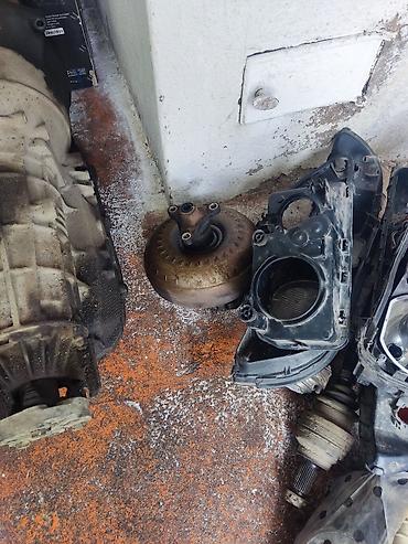 - В комплекте на фото: коробка передач, разъёмы/жгут, датчики; рядом — гидротрансформатор