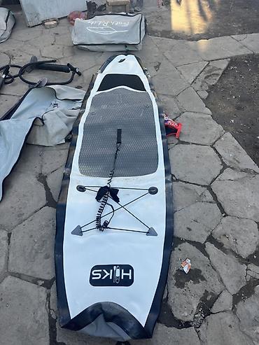 Если ищете универсальные SUP-борды с полной базовой комплектацией (насос, рюкзак/чехол, лиш, багажные стропы, жилет на фото) и удобной палубой — смотрите варианты на снимках: HIKS, VEAZ и доска с рисунком косатки.