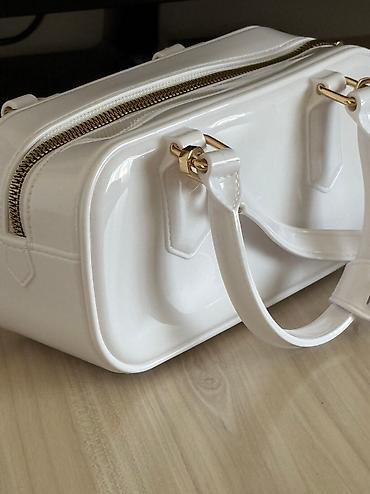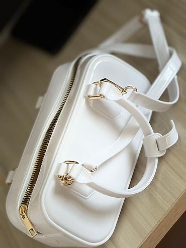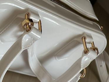 Белая лаковая сумочка с золотыми элементами — идеальный акцент в любом образе.