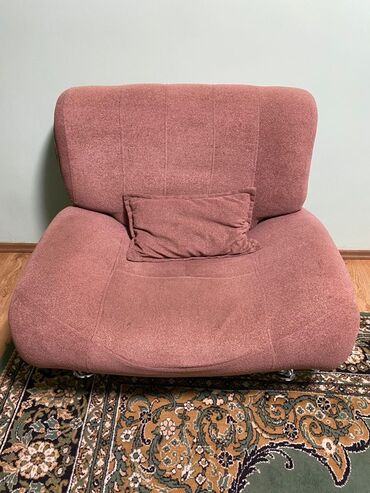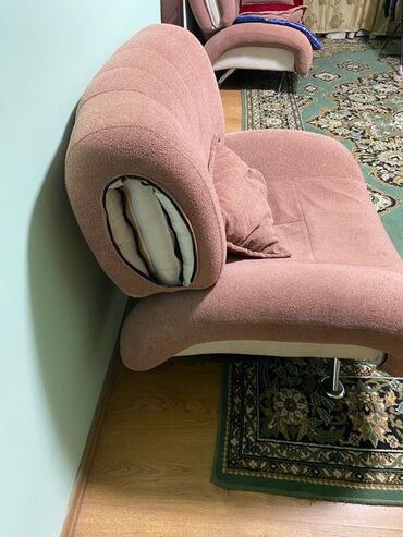 - Обивка: текстиль (буклированная/ворсовая фактура), цвет пыльно‑розовый
