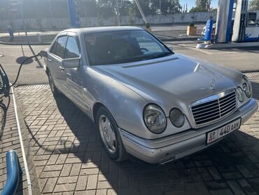 Mercedes-Benz E‑Class седан (кузов W210), серебристый. Основные характеристики: - Кузов: 4‑дверный седан, серебристый цвет, заводские литые диски Mercedes. - Двигатель: бензиновый V‑образный, фирм...