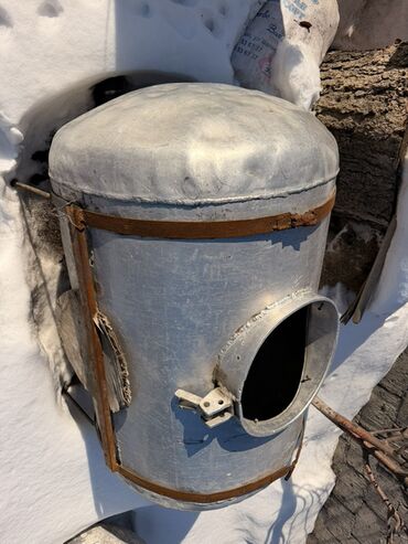 Металлическая цистерна (бак-резервуар) овальной формы. Характеристики: - Материал: толстоcтенная сталь. - Объем: ориентировочно 1–1,5 м³ (визуально; на горловине выбит номер/маркировка «1396»). - ...