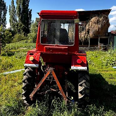 Трактор «Владимирец» (вероятно Т-25) с кабиной. Основные характеристики и комплектация по фото: - Дизельный двигатель с горизонтальным расположением цилиндров, механический ТНВД, выхлопная труба в...