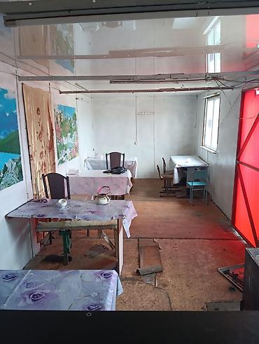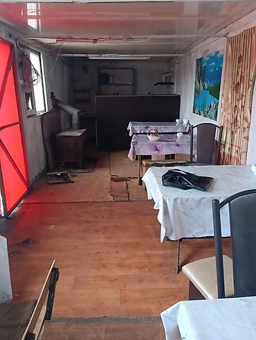 - Внутри одно общее помещение с зонированием перегородкой; несколько столов и стульев остаются.